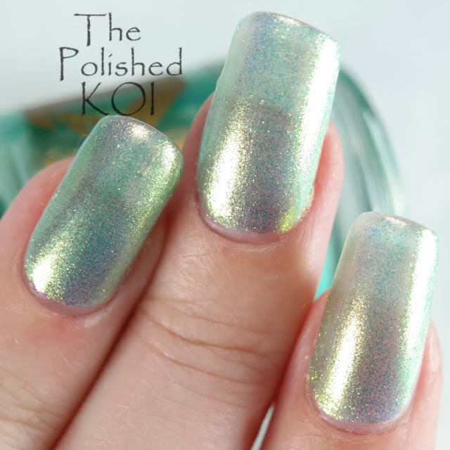 Description: a soft sea foam with gold to green shimmer